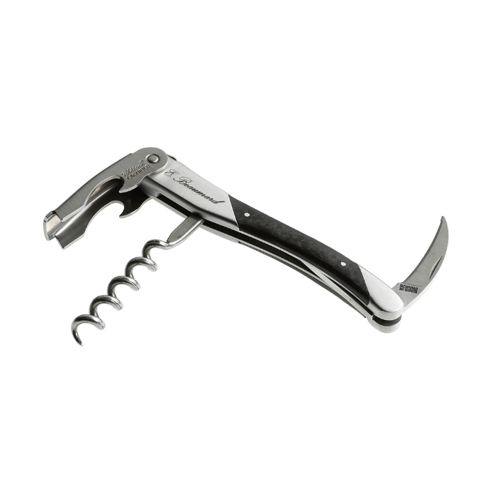 本體側面刻有其姓名「E. Beaumard」,手柄採用 Château Laguiole 獨有的碳纖維材質